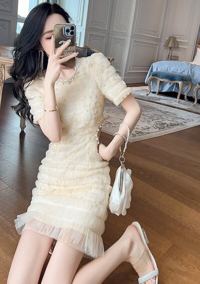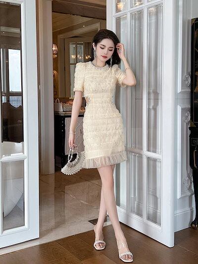 【JY.上品】 チュールワンピース 夏 フリル ドレス パーティー キャバ 着痩せ 大人 お呼ばれ 同窓会 披露宴 卒業式 結婚式 ウェディング 二次会 成人式