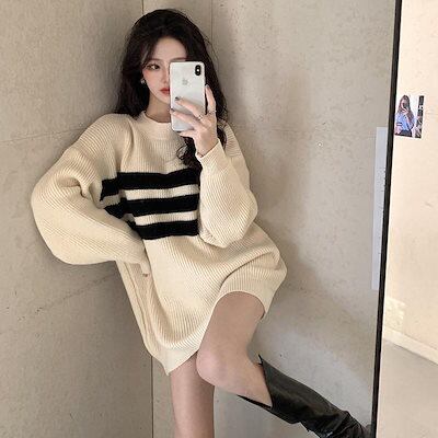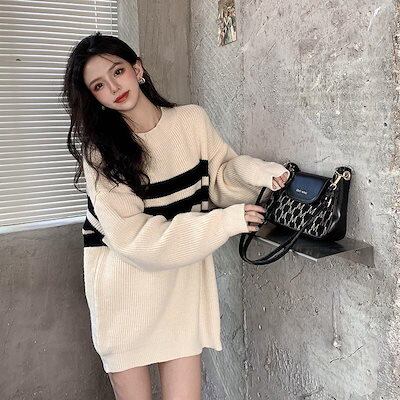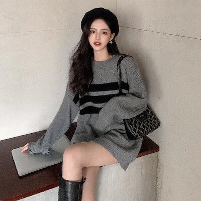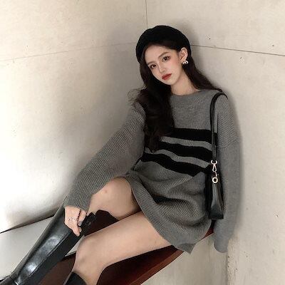 人気なリブニット ベーシックニット カシミヤタッチ 秋冬ジャケット秋冬ニットセーターレディースカジュアルゆったり体型カバーラウンドネックwwy194裹起毛 長袖トップス