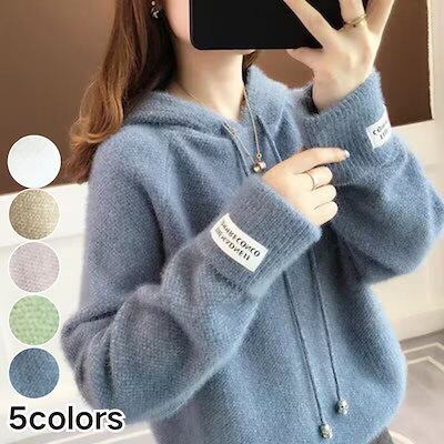 人気なリブニット 秋冬新作 ゆったり フード付きニットセーター レディース 韓カシミヤタッチカジュアル 怠惰な風 快適 ニットトップス 暖かい ベーシックニット 百掛け インナー アンダーウェア