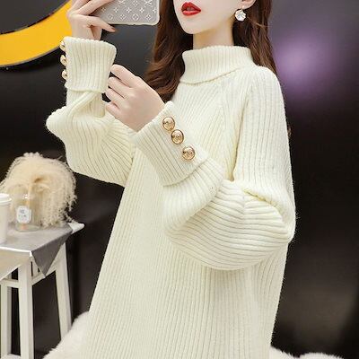 人気なリブニット ベーシックニット カシミヤタッチ 秋冬 ハイネックニットトップス ゆったり百掛け セーター レディース怠惰な風 暖かいタートルネック 体型カバー 裹起毛 ニットセーター