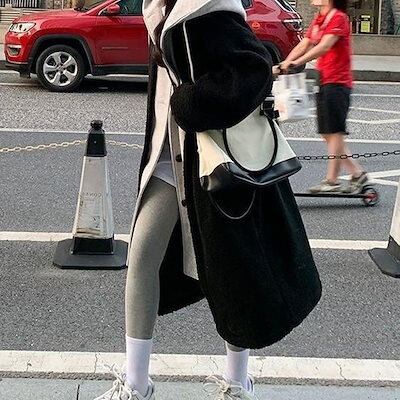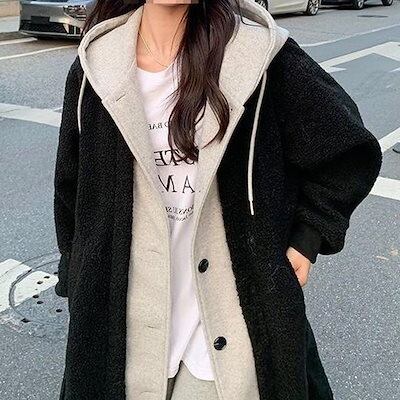 トレンチコート 大人っぽチェスターコート 冬アウター フェイクレイヤード ジャケット女性ラムウールコート秋と冬緩いパッド入りの肥厚セーターの長いセクションで