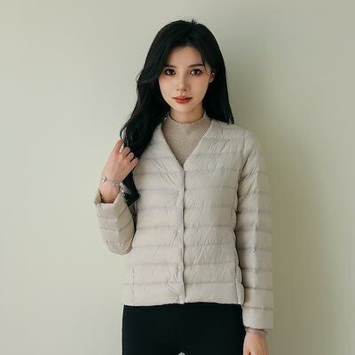 冬アウター ダウンジャケットVネックラウンドネック軽量ソリッドカラーシンプルなダックダウンレディースライナーライトダウンジャケットジャケットの薄い部分