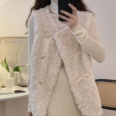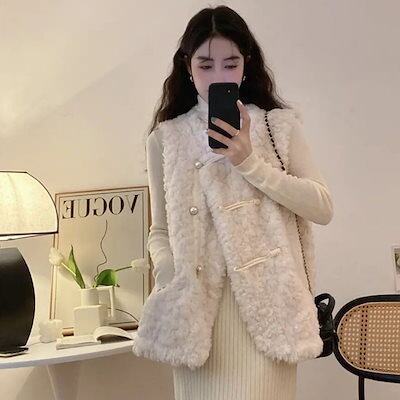 冬アウター 冬物新作 ラムズウールウエストコート かわいい 百掛け ファーキャンバス ジャケット ジャケット