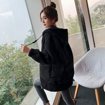 冬アウター人工ボア フィックフリース キルティング 加厚 ラムウール フード付き 大きい袋 防風 パーカー 中綿コート アウタージャケット裏起毛ファッション ジャケット マ
