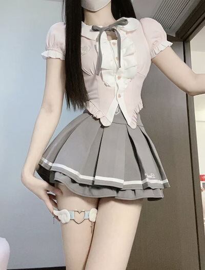 パーティードレス 学院風キュートjk制服少女キルティングシャツ+ハイウエストスカートプリーツスカートセット