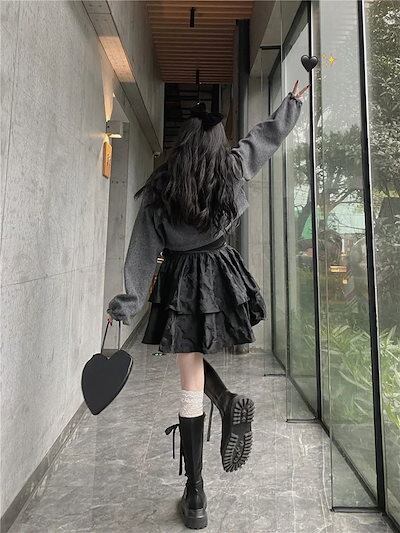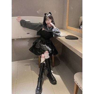 パーティードレス キャミソールワンピース+シャツカバー2点セットダーク系秋デザイン黒ギャルスーツ