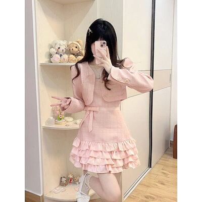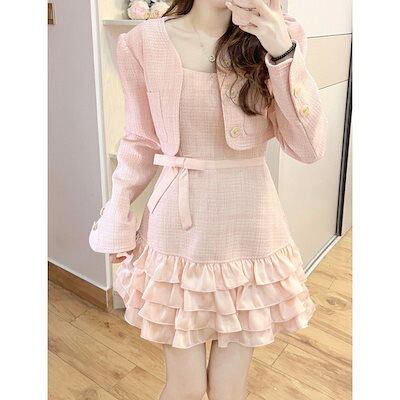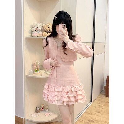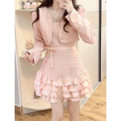 パーティードレス 韓国系ファッション気質ショート丈コート+キャミソールワンピースセットアップスカートins
