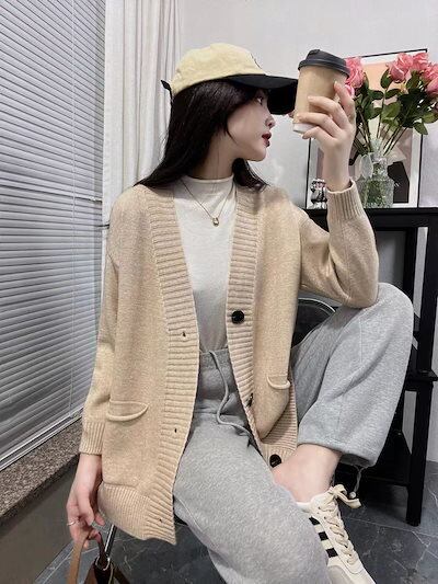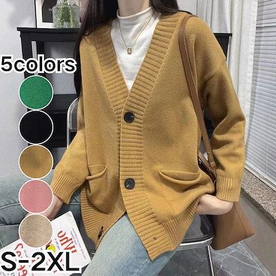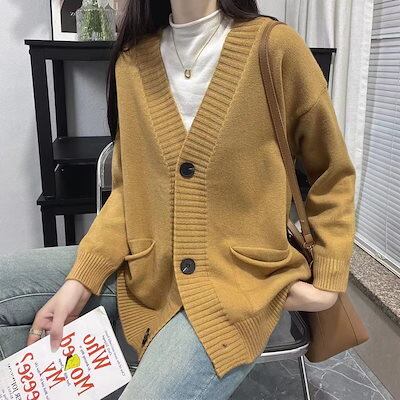 ベーシックニットニットカーディガン 秋冬新作ゆったりVネックカーディガンニットコートセーター