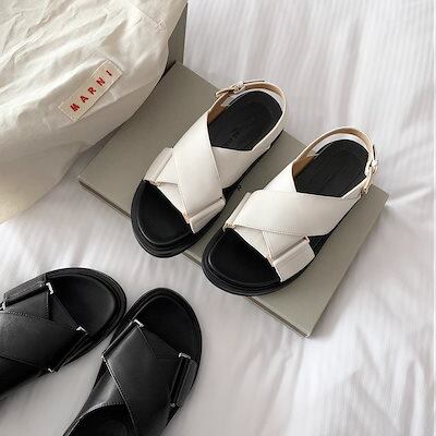 韓国人气 厚底サンダル レディース スポーツサンダル クロスベルトで足指見せカジュアル厚底ローマンサンダル夏女 通気 ビーチ フラットサンダル 春夏 ストラップサンダル