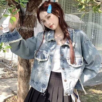 2025韓国 デニムジャケット レディース 春と秋のカウボーイコート女性のショート丈のゆったりしたジャケットの上着 トップス アウター