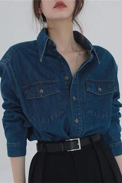 2025韓国 デニムジャケット レディース レトロな港風デニムシャツコート女性春秋服重ね着インナーシャツ トップス アウター