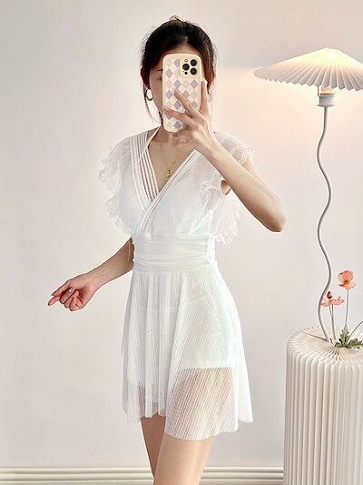 水着 レディース 韓国 2025新水着女性の着やせレーススカート式コングロマリット控えめ温泉水着 修学旅行 可愛い ラッシュガード 水着 体型カバー ワンピース ビキニ