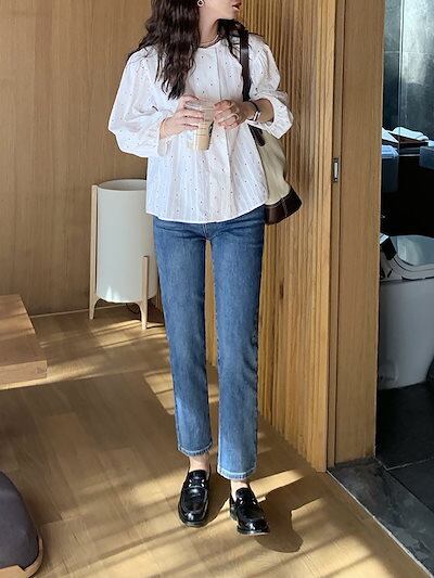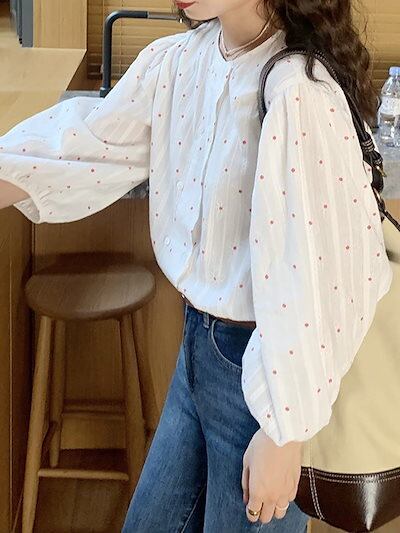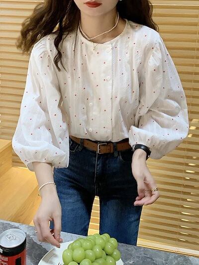 今っぽシアーシャツ 長袖 レトロな韓国小花の二列ボタンで痩せた白シャツ ブラウス レディースファッション オフィス カーディガン