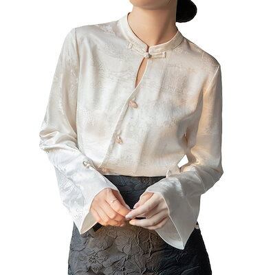 今っぽシアーシャツ 長袖 韓国 ジャカードコイルブラウス春秋の新作おしゃれ通勤トップス ブラウス レディースファッション オフィス カーディガン