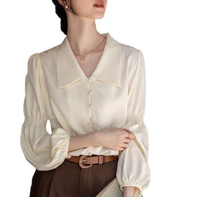 今っぽシアーシャツ レトロ長袖シャツレディース春秋新作パフスリーブ洋風シャツトップス 韓国 ブラウス レディースファッション オフィス カーディガン