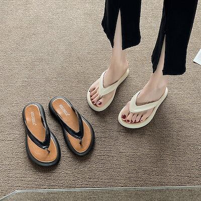 厚底サンダル レディース 春夏 韓国 人字スリッパ女性用外履き2025年夏新作足挟みサンダル スポーツサンダル 通気 ビーチ フラットサンダル ストラップサンダル
