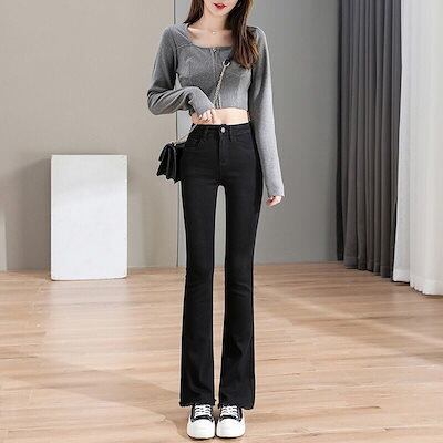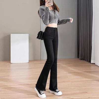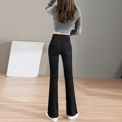 【激安通販】黒のハイウエストジーンズ女性の薄いスキニーパンツ