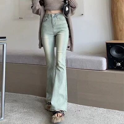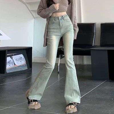 【激安通販】ヴィンテージ淡色ハイウエストジーンズ女性薄型スキニーパンツ