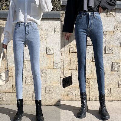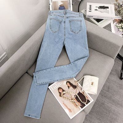 【3日以内出荷】脚長効果!スキニーデニムパンツ ハイウエストジーンズ 2024秋新 サイズスリムストレッチスキニー レディース 韓国ファッション