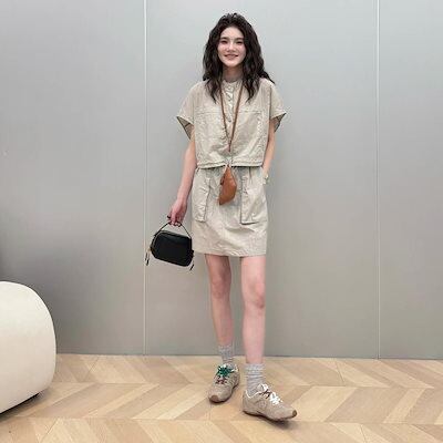 【3日以内出荷】涼しく楽ちんセットアップ 工装半袖+ミニスカート夏のゆったりとしたカジュアルなロープ引きで腰を収めて痩せて見える レディース 韓国ファッション