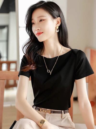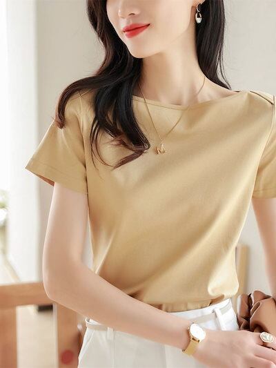 Tシャツ 気質 鎖骨 半袖 夏の新 着痩せ トップス レディース 韓国ファッション