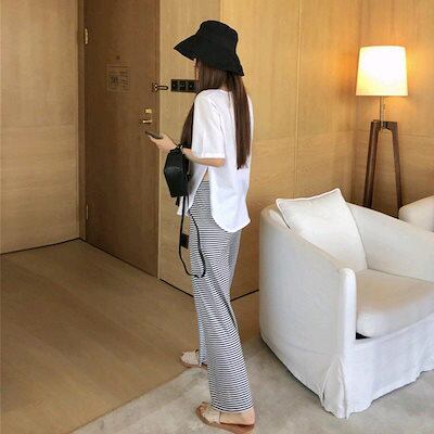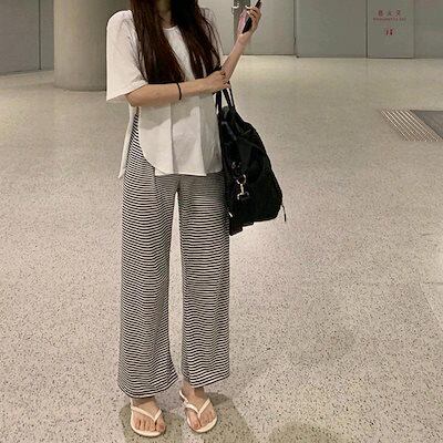 【3日以内出荷】涼しく楽ちんセットアップ 2枚セット 夏 半袖+長ズボンを着て外出する レディース 韓国ファッション