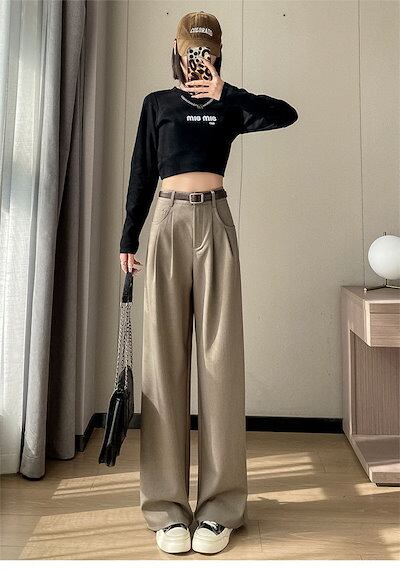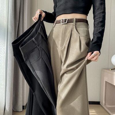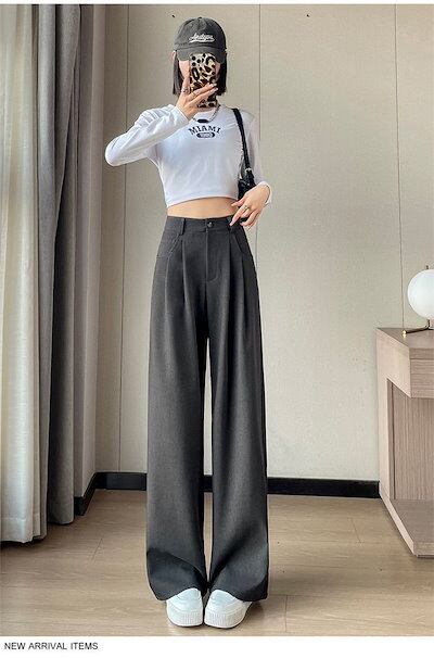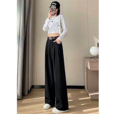 【3日以内出荷】ワイドパンツ 美脚 パンツハイウエスト狭版ワイドパンツゆったり垂下感ストレートモップロングパンツ レディース 韓国