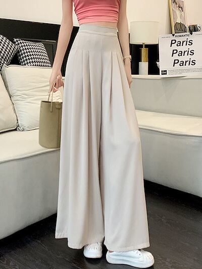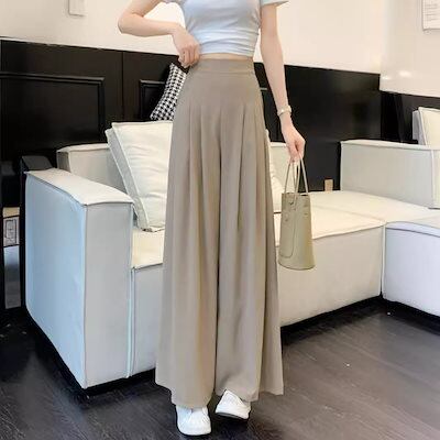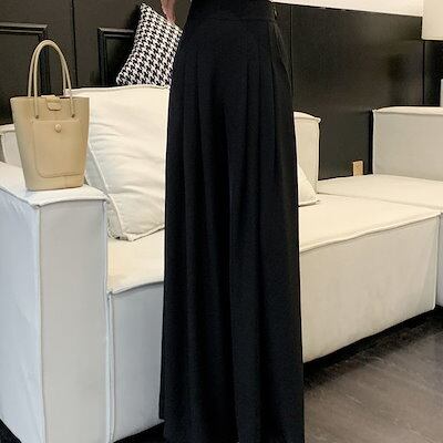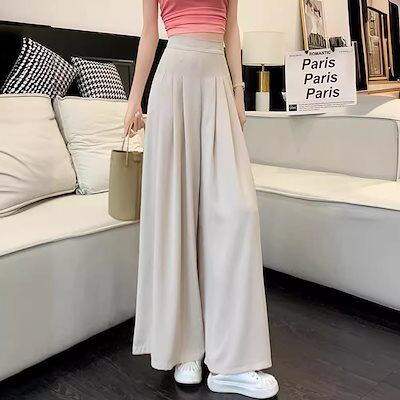 【3日以内出荷】ワイドパンツ 美脚 春夏薄手 2024新型 ハイウエストダウンで痩せ見えカジュアルモップキュロット レディース 韓国