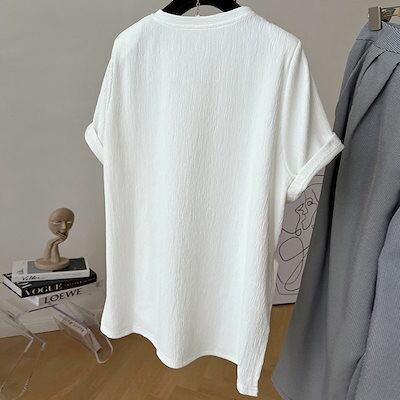 【3日以内出荷】Tシャツ トップス オーバーサイズ150 KGスリットギャザー純色半袖夏ゆったり上着 レディース 韓国