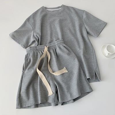 【3日以内出荷】涼しく楽ちんセットアップ 丸首 半袖 Tシャツポケットスポーツパンツ 2点セット 夏のゆったりストレッチカジュアル 純色 レディース 韓国ファッション
