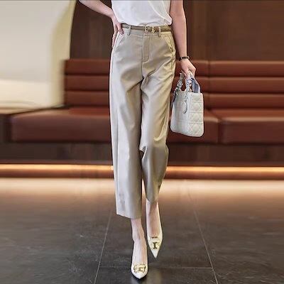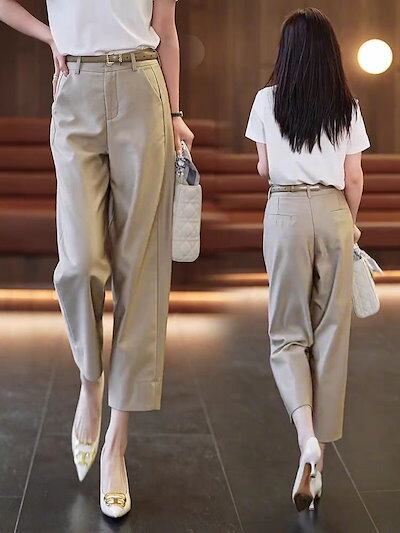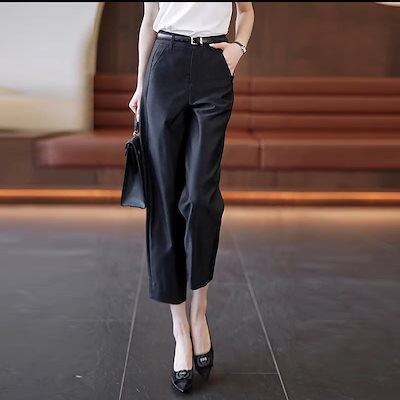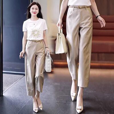 【3日以内出荷】脚長効果!タイトパンツ 夏の薄手の新型ハイウエストハロンパンツ痩せ見えストレート九分パンツ レディース 韓国ファッション