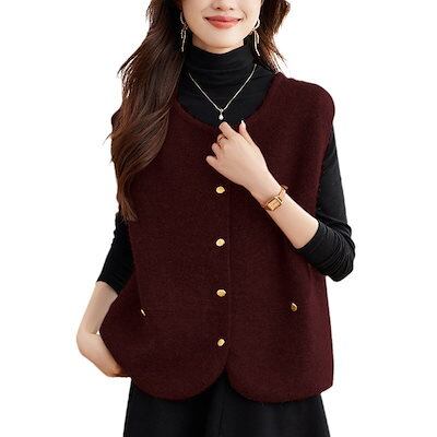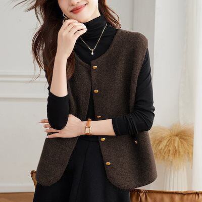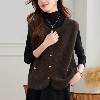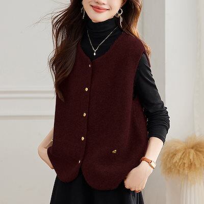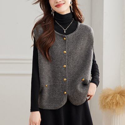 ニットベスト レディース Vネック 春 秋 前開き ベスト トップス カーディンガン ニット ノースリーブ セーター レイヤード 重ね着 ゆったり 大きいサイズ 体型カバー カジュアル