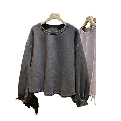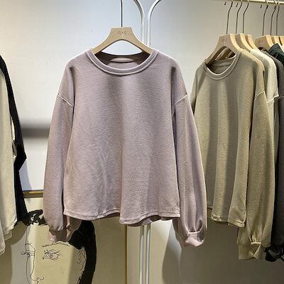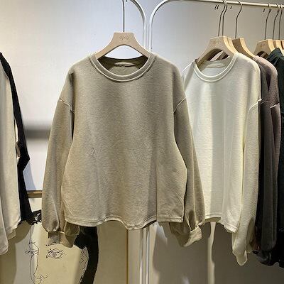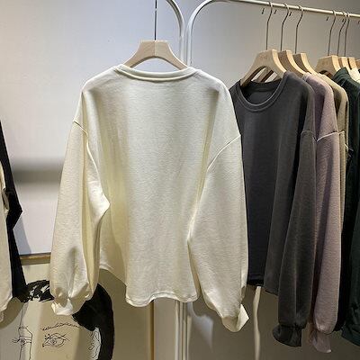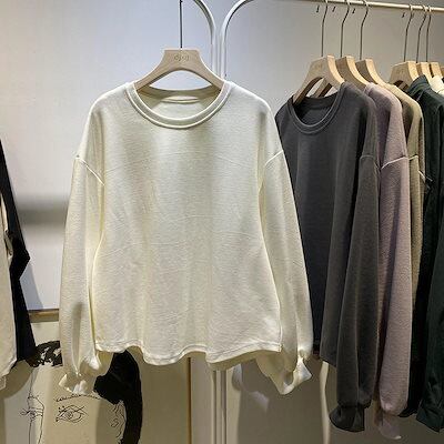 シンプルなラウンドネックの肩の長袖のガードル2024秋のシンプルな韓国のファッションはゆったりしています