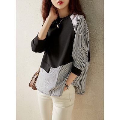 2024人気新作非対称ストライプステッチシルエットゆるい丸首ガードルジャケット女性