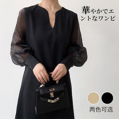 2024秋の韓国の新型vネックのゆったりとしたカジュアルなシフォンの袖はワンピースをつなぎ合わせます