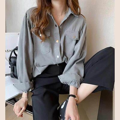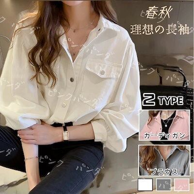 2024秋 人気 流行り ブラウス レディース ゆったり 百掛け 長袖トップス カーディガンorブラウス 無地定番 着痩せ大きいサイズ 長袖ブラウス 通勤 インナ