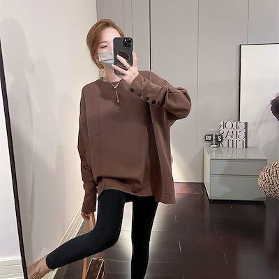 韓国 パーカー ボトムシャツ 長袖 スウェット Tシャツ レディース 秋 ミッドレングス トップス