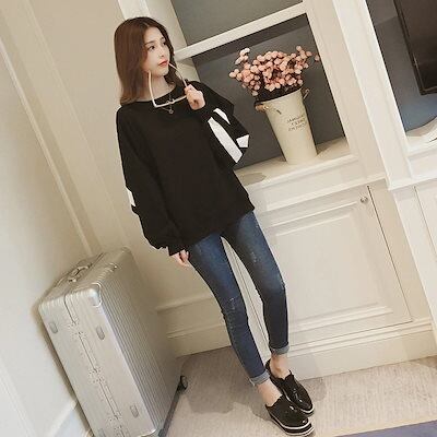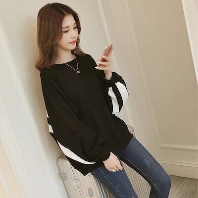 韓国 パーカー 2024 秋 新作 ストライプ クラッシュカラー ランタンスリーブ スウェットシャツ 学生スウェットシャツ ロングスリーブ