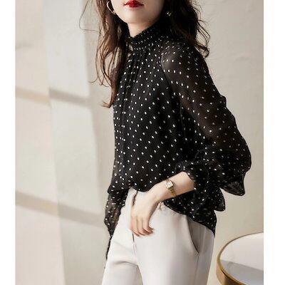 シアーシャツ 初秋新作 上品 ブラウス レディース 韓国ファッション 水玉模様 長袖ブラウス 気質百掛け 長袖トップス 通勤 インナー 夏 セクシーレース袖 シフォンブラウス シャツ