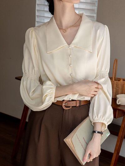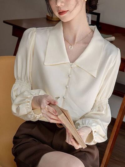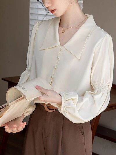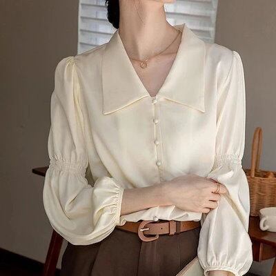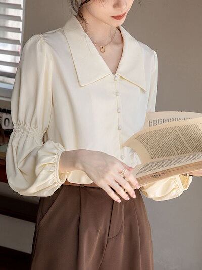 2024早秋 アプリコット シャツ 今っぽシアーシャツ 通勤 小人数フレンチレトロ トップス デザイン感
