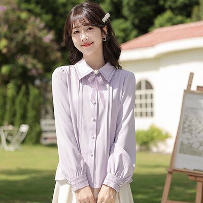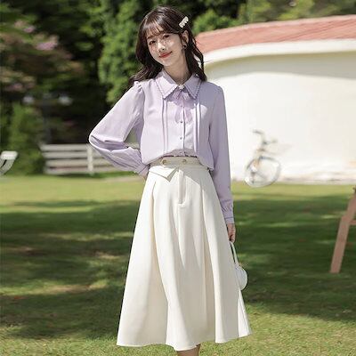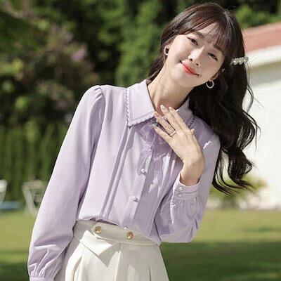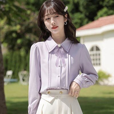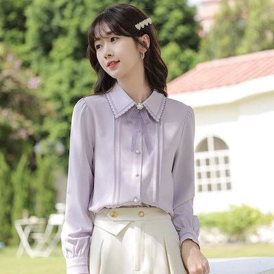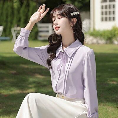 2024秋パープル 長袖シャツ 今っぽシアーシャツ デザイン感シャツ 通勤 トップス