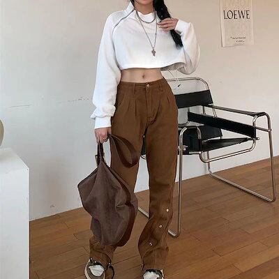 ワイドパンツワイドパンツアメリカンレトロストレートパンツロングパンツハイウエストカバーゆったりジーンズ腰を緩める大きいサイズ レディースパンツ