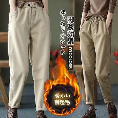 ひんやりボトムスかっこいい!スラックスパンツ秋冬 ゆったり 裏起毛 厚手 レディース パンツ オシャレ おしゃれ 体型カバー ロングパンツワイドパンツコーデュロイズボン脚長効果!スキニーパンツ