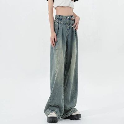 デニムパンツ ジーンズ レトロ レディース おしゃれ スキニーパンツ ハイウエスト ワイドパンツ ズボン デニムボトムス ゆったり シンプル 2024新作
