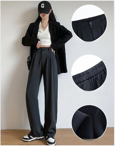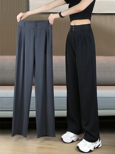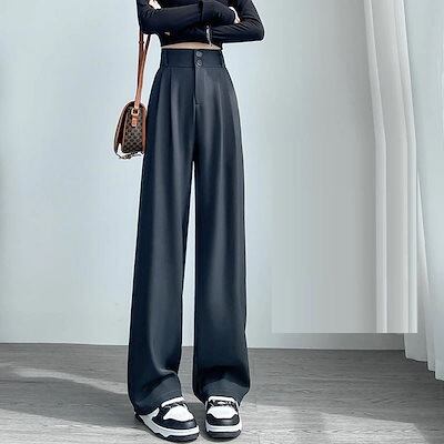 脚長効果!スキニーパンツ 春夏 スラックスパンツ ワイドパンツ ストレート 垂れ感 高級感  韓国ファッション ハイウエスト 伸縮性のあるウエスト レディース カジュアル 着やせ 百掛け