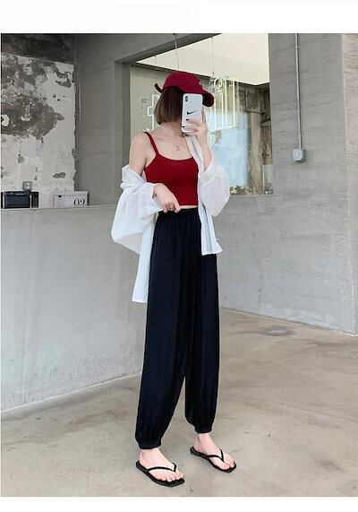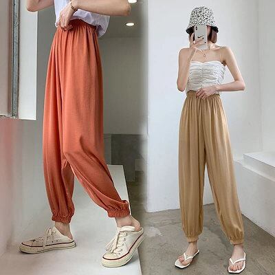 韓国ファッション スキニーパンツ ワイドパンツ スラックスパンツ デニムパンツ 接触冷感ボトムス ジョガーパンツ 夏 レディース 涼感 シフォン テーパードパンツ ウエストゴムパンツ ハイウ