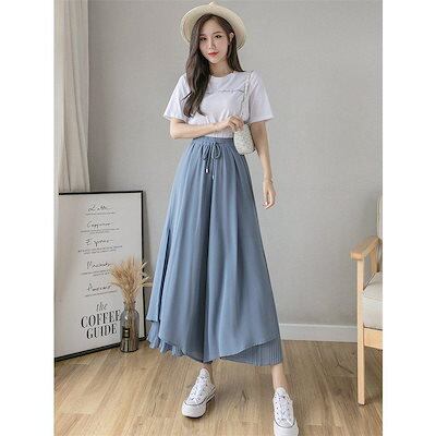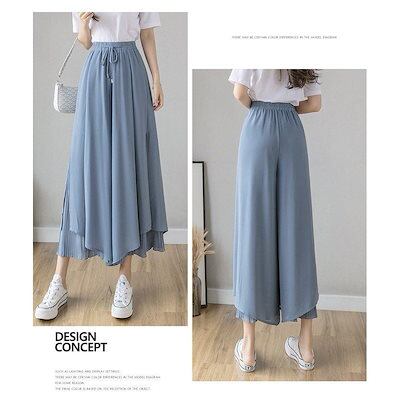 コーデガウチョパンツ夏 ワイドパンツ 9分丈ボトムスレディーススカート風ズボン体型カバー大きいサイズゆったりきれいめ
