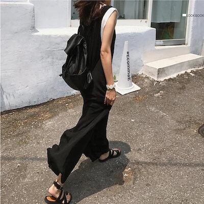 夏サスペンダー レディース ゆったり 大きいサイズ ワイドレッグ ジャンプスーツ 学生 カジュアル 綿麻 9分パンツ トレンド