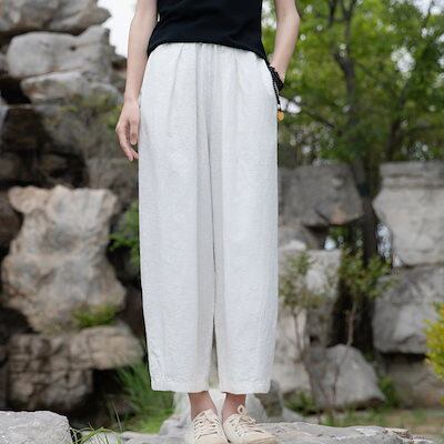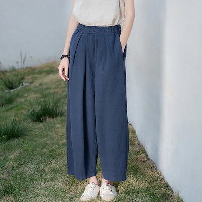 春夏文学レトロルーズンドレープカジュアルパンツレディースパンツラミーサンドウォッシュワイドレッグパンツ