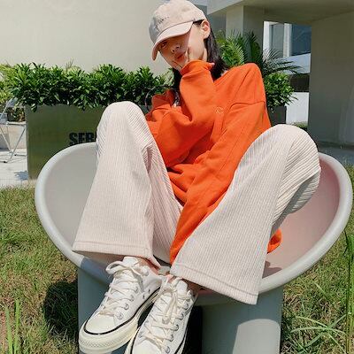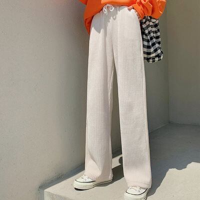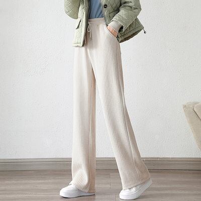 【3日以内出荷】かっこいい!スラックスパンツワイドパンツ韓国ンハイウエストニットパンツ レディースリブパンツ ワイドパンツ ガウチョパンツ